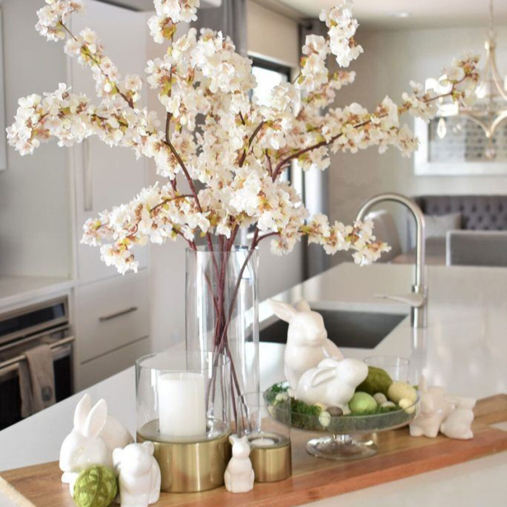 گلهای طبیعی یکی از مهمترین نمادهای بهار است. استفاده از گلدان های شیشه ای شفاف ، تزئین شده با گلهای فصلی فصلی مانند لاله ها ، هاش ها ، گل دافودیل ها و گل های گیلاس ، به میز شما طراوت و انرژی باشکوهی می بخشد.
