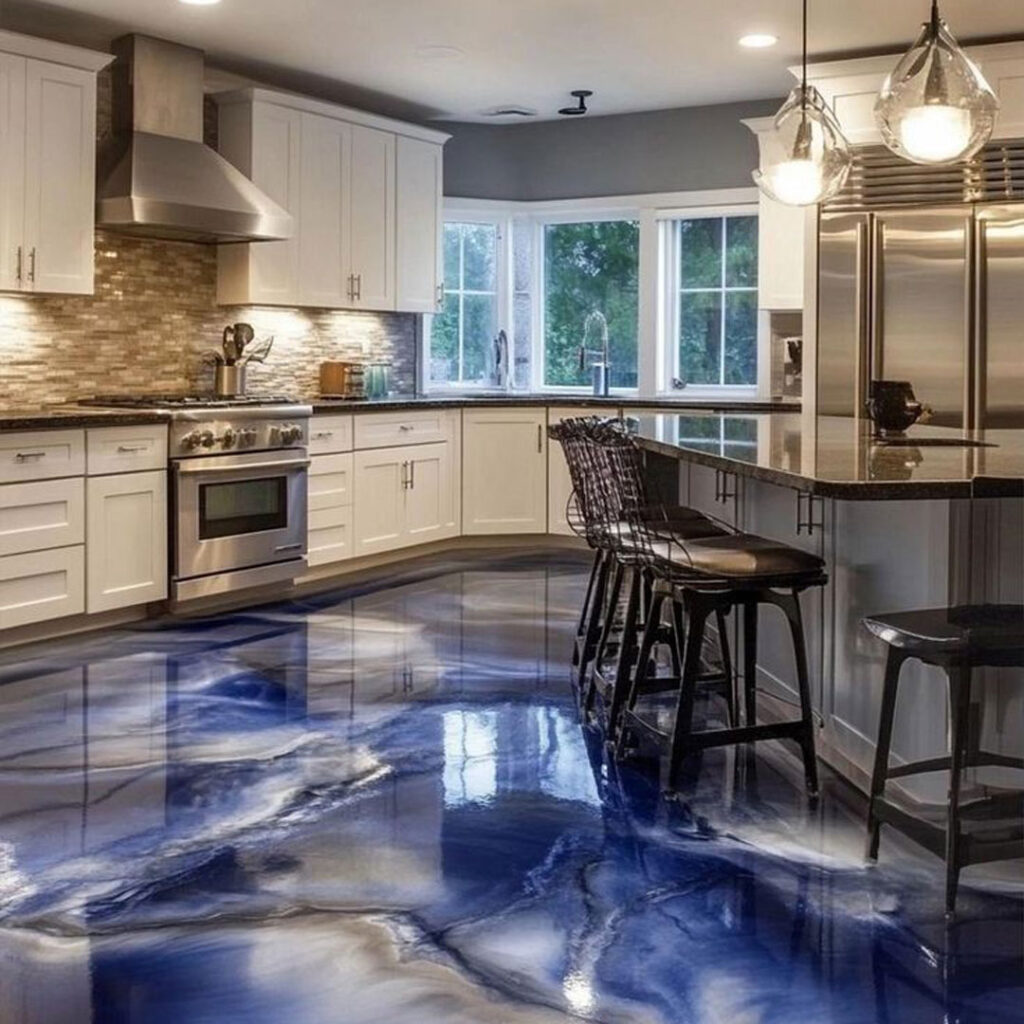 4. کفپوش آشپزخانه لوکس: کفپوش رزین یکی از ترین روند طراحی داخلی است که در آشپزخانه های معاصر مورد استفاده قرار می گیرد. این نوع کفپوش ها یکپارچه ، ضد آب و از نظر شیمیایی هستند و به راحتی تمیز می شوند.
