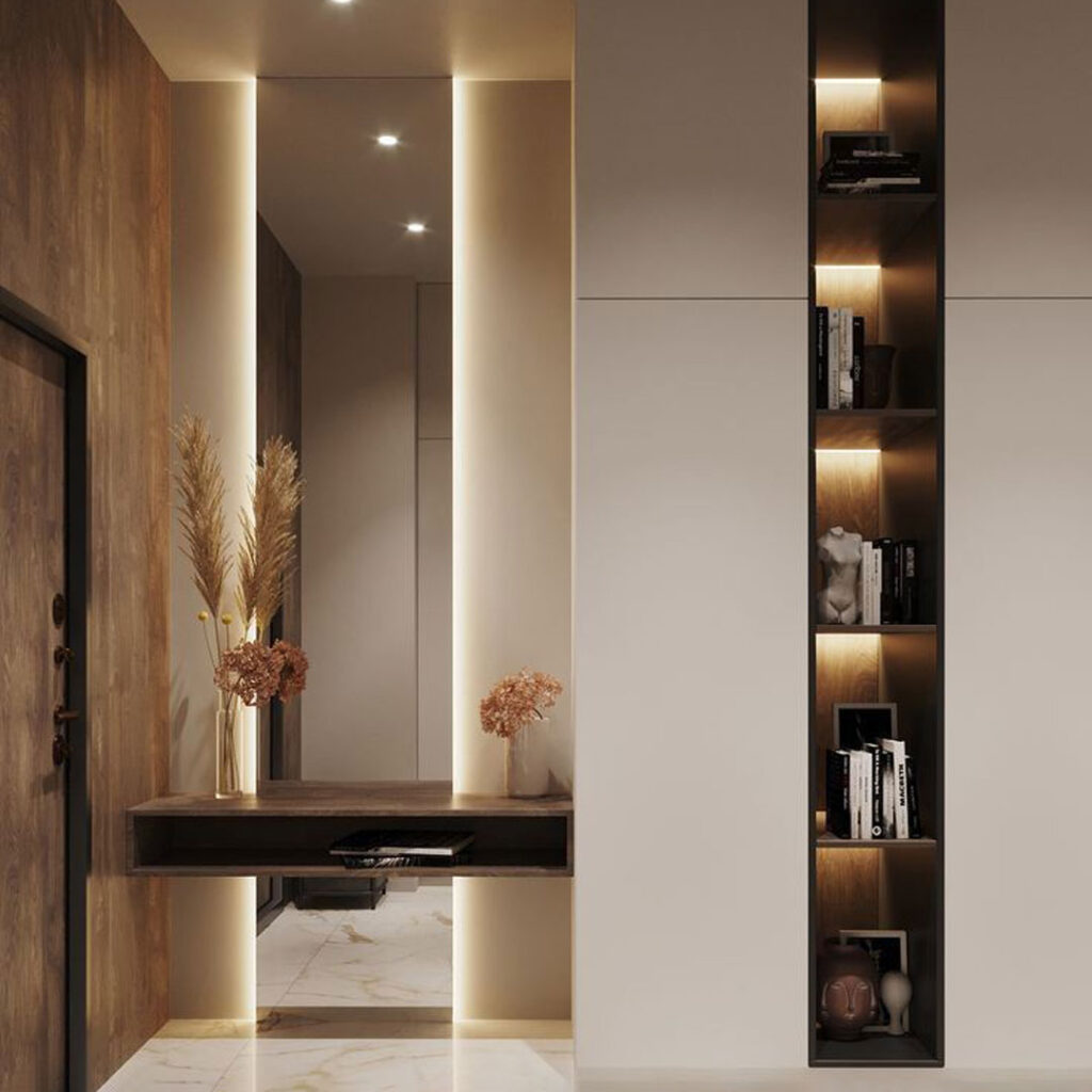5. نورپردازی دیوارها: افزودن نورهای مخفی یا چراغ های تزئینی به دیوارها بعد جدیدی از زیبایی را به فضای داخلی می بخشد. این روش برای نمایش جزئیات برخی از دیوارها مانند پانل های سه بعدی یا دیوارهای سنگی بسیار موثر است.