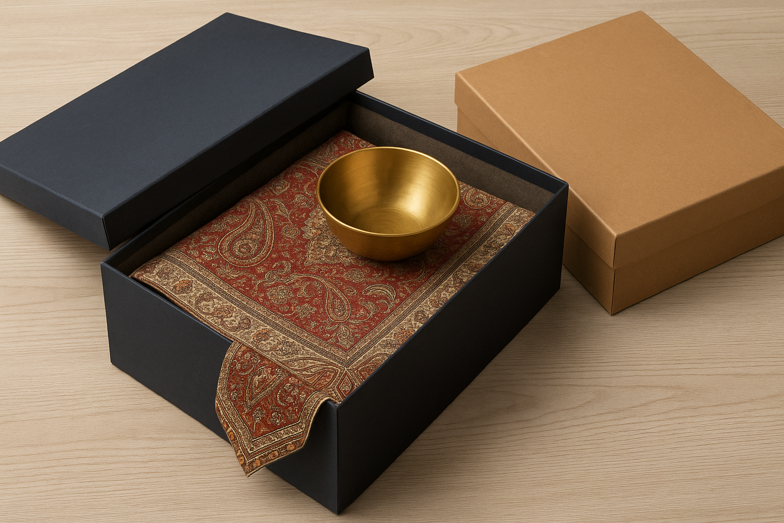 تیم طراحی ترمه نفیس یزد با توجه به رنگبندی و سلیقه برند، چند ماکاپ اختصاصی آماده میکند تا پیش از تولید، ظاهر نهایی هدیه را ببینید. پس از تأیید و اصلاح جزئیات، پروژه وارد مرحله اجرایی میشود.